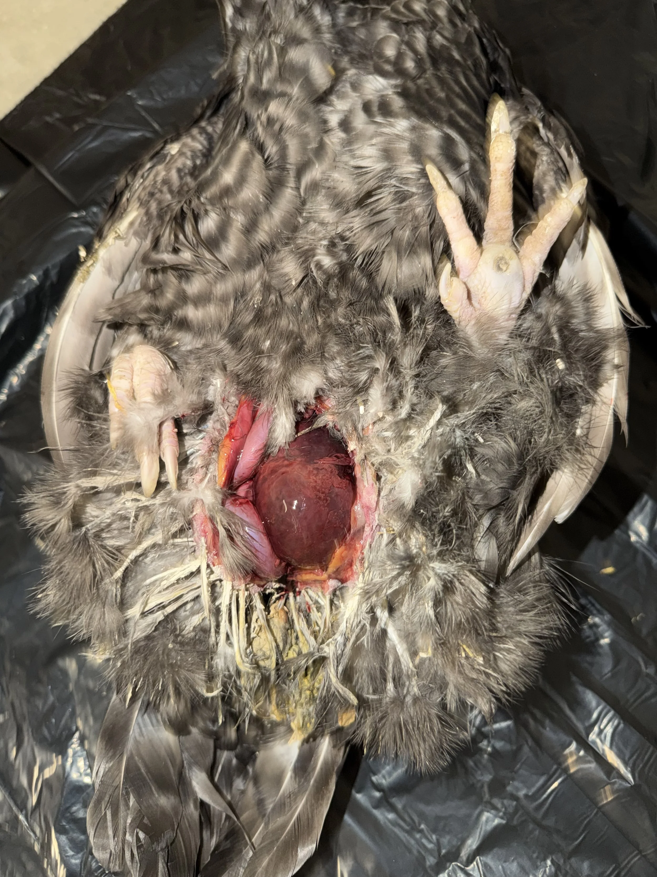 To perform this examination, I used a scalpel, gloves, and a plastic trash bag to contain the mess. A strong stomach is needed for a necropsy, especially when it is performed on a pet like Pocket. I cut through the layers of skin to reveal the contents of her reproductive system. I didn’t have to investigate far, as a large mass was immediately apparent. I recorded video and pictures to consult with the doctor, and his suspicion matched mine. Pocket had a large tumor. Tumors like this can rupture or hemorrhage, which can cause sudden death. I am relieved to know I could not have prevented her passing, but I am sad that her life has ended. Performing a necropsy also gave me peace of mind, knowing that the rest of my flock is safe.